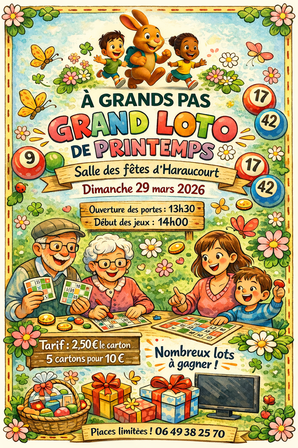 L'association A GRANDS PAS organise son loto de printemps le dimanche 29 mars 2026 à la salle des fête d'Haraucourt.